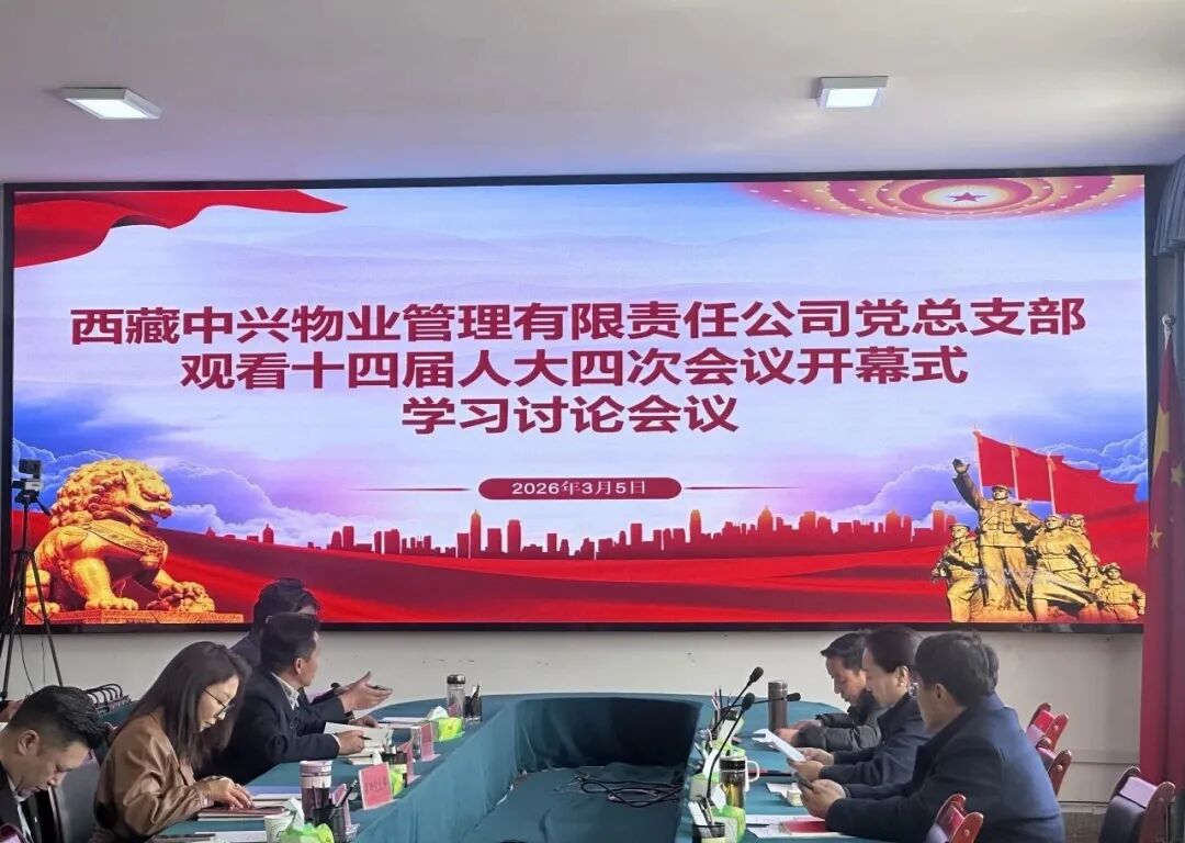 2026年3月5日,西藏中兴物业管理有限责任公司党总支部组织全体党员干部召开专题研讨会议,深入学习贯彻十四届全国人大四次会议精神。会议由党总支部委员其米多吉主持,公司党总支部委员及各党支部委员围绕会议精神展开了热烈讨论。
