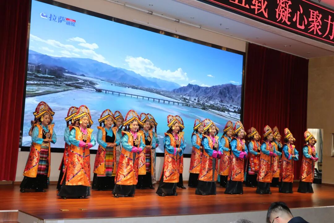 汇演在集团合唱队《谐萨》的悠扬歌声中拉开帷幕。整场活动以歌舞、独唱、朗诵等丰富艺术形式,生动展现了中兴商贸集团扎根高原、开拓进取、实干笃行的奋斗足迹。节目紧扣“砥砺奋进”“凝心聚力”核心主题,既呈现了企业从初创奠基到发展壮大的不凡历程,也充分彰显了全体干部职工团结拼搏、昂扬向上的精神风貌,现场气氛热烈庄重、掌声此起彼伏。