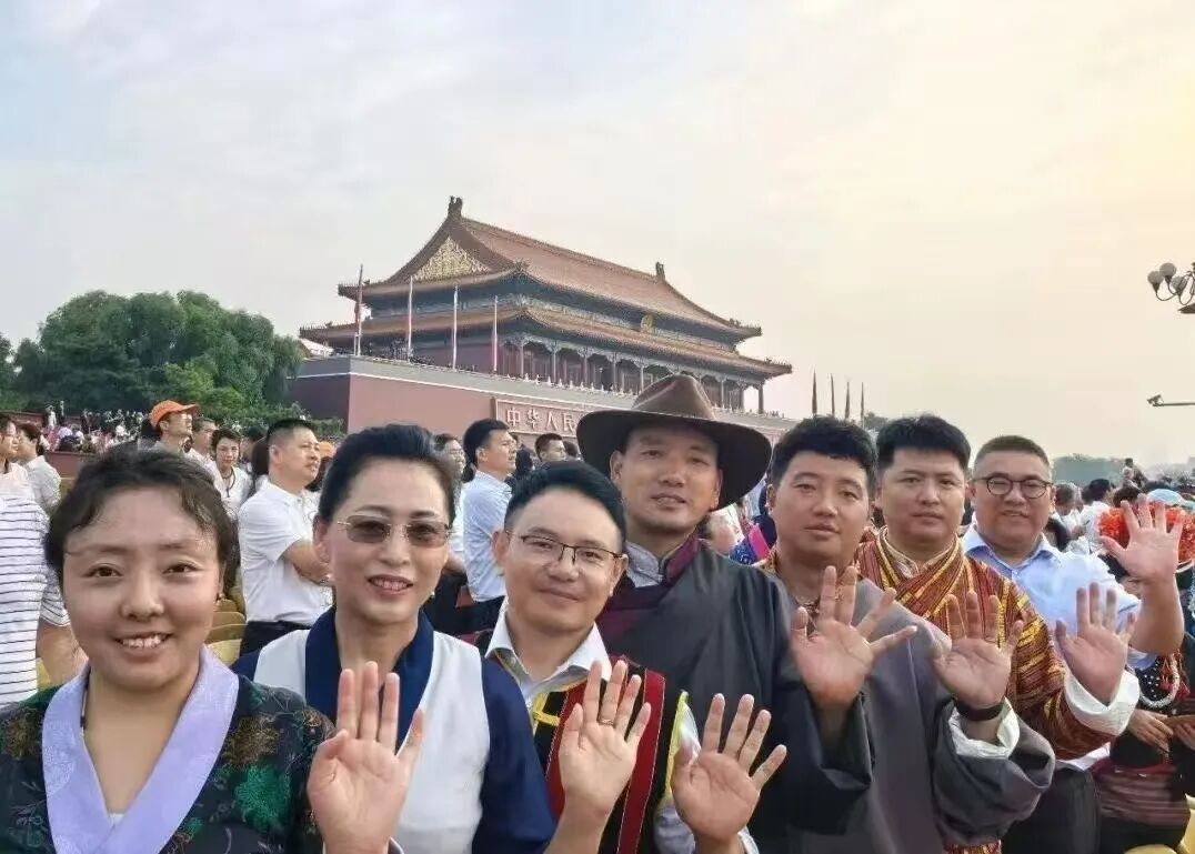 བོད་ལྗོངས་ཀྲུང་ཤིན་ཚོང་དོན་ཟོག་འགྲེམས་ཐོན་ལས་གོང་འཕེལ་ཚོགས་པ་ཚད་ཡོད་ཀུང་སི།9月3日,纪念中国人民抗日战争暨世界反法西斯战争胜利80周年阅兵仪式在北京隆重举行。全国民族团结进步模范个人、西藏雪域天创开发有限公司党支部书记兼董事长白玛央珍受邀亲临观礼。站在现场,看着祖国强大的军事力量、整齐划一的方阵以及先进的装备,她内心激动不已,感慨道:“作为西藏民族团结先进个人代表,能够亲身见证这一伟大时刻,我倍感自豪!这次经历让我对‘团结’与‘奋进’有了更深刻的体悟,这是我一生难忘的荣耀!”