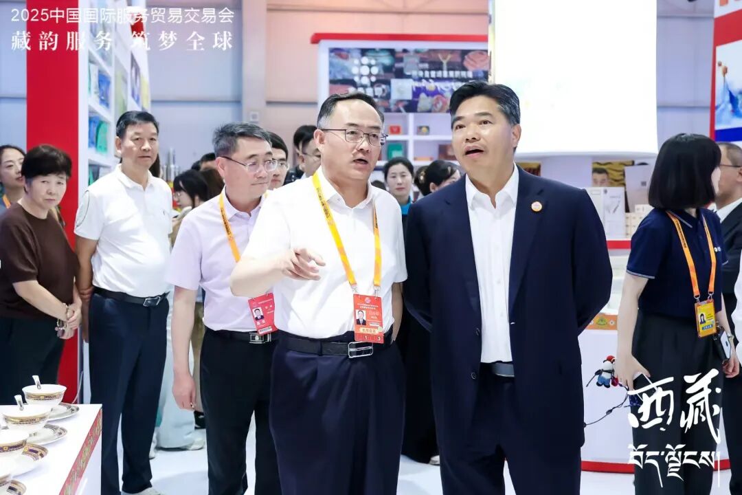 བོད་ལྗོངས་ཀྲུང་ཤིན་ཚོང་དོན་ཟོག་འགྲེམས་ཐོན་ལས་གོང་འཕེལ་ཚོགས་པ་ཚད་ཡོད་ཀུང་སི།2025年9月10日,在西藏自治区政府和商务厅统一筹划和安排下,西藏中兴供应链公司作为唯一一家区内边贸物流企业参加了2025中国国际服务贸易交易会。开展当日,西藏自治区人大领导莅临西藏自治区展区,并深入调研并亲自听取相关工作汇报,对供应链公司在藏这几年来为区内外外贸企业的服务成果给予高度肯定。