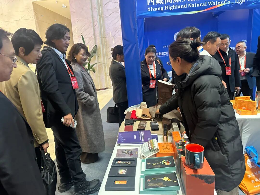 地球第三极公司作为企业代表参展,重点展示了具有西藏高原特色的皮革制品:藏式皮具、牦牛皮包、传统藏靴等,体现精湛工艺和实用性。毛纺织制品:牦牛绒围巾、藏毯、羊毛毡制品等,兼具保暖性与民族风格。文创类产品:包括藏文化主题的书签、冰箱贴、马克杯、钥匙扣等,彰显民族文化魅力。食品类产品:高原特色农产品如蜂蜜等,突出天然健康属性。