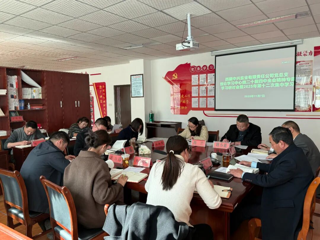 为深入学习贯彻党的二十届四中全会精神,11月7日下午,西藏中兴盐业有限责任公司党总支理论学习中心组召开2025年第十二次集中学习会议,专题学习党的二十届四中全会精神。公司党总支书记、董事长党小朝同志主持会议,公司在家班子成员,各部门正副职及全体在家党员(含预备党员)共计20余人参加学习,各分公司负责人、党员(含预备党员)线上参加。