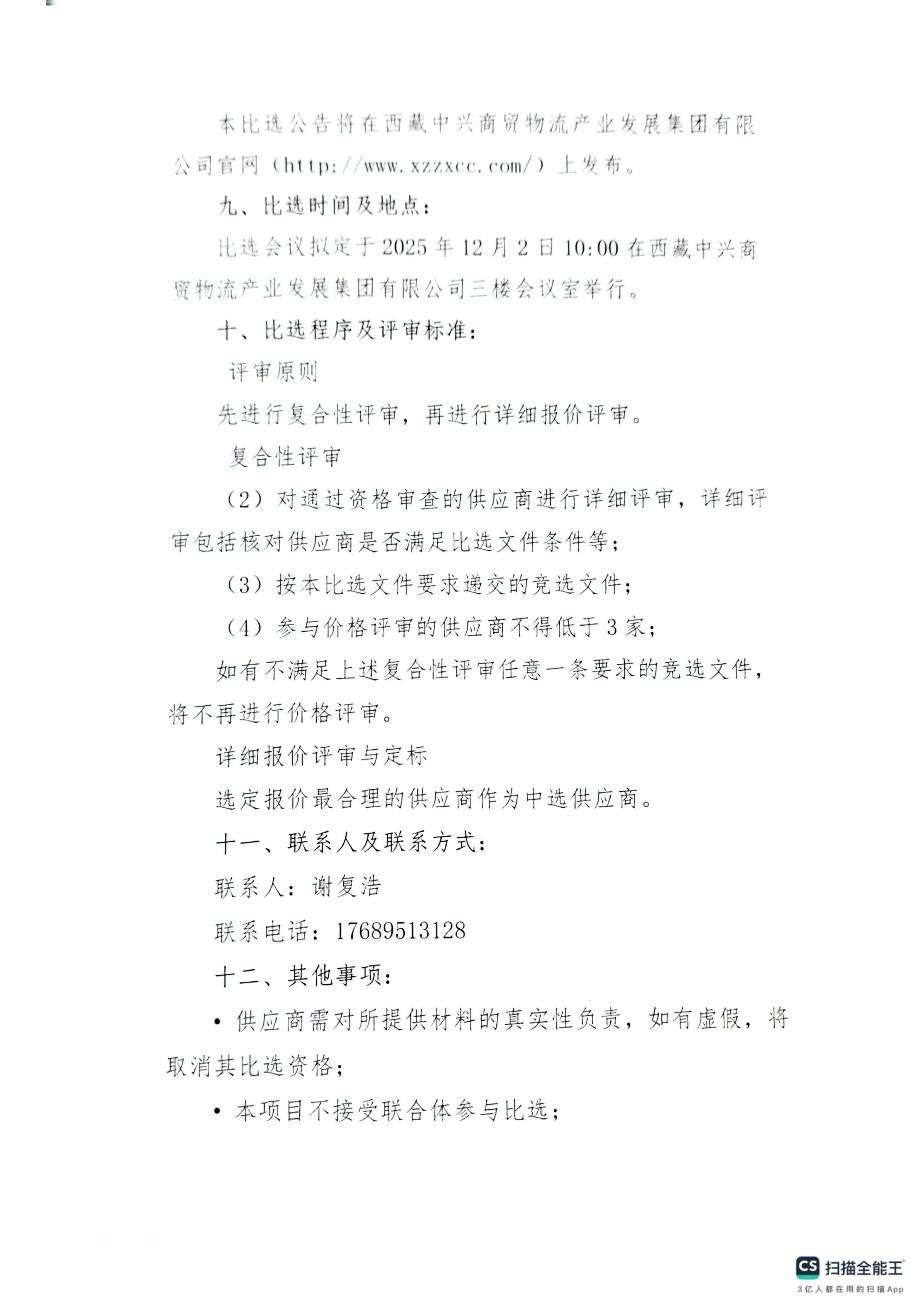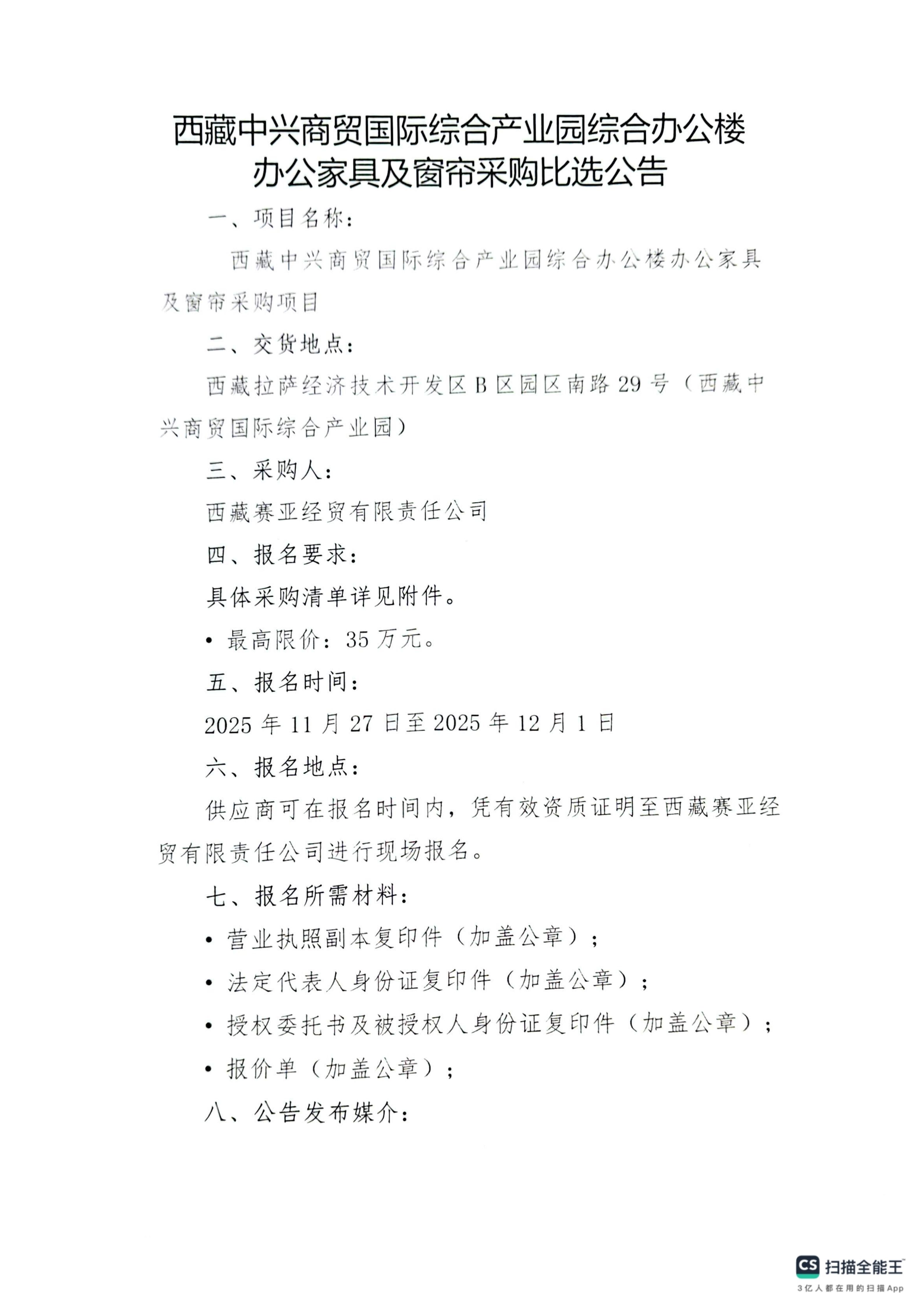 西藏中兴商贸国际综合产业园综合办公楼办公家具及窗帘采购比选公告