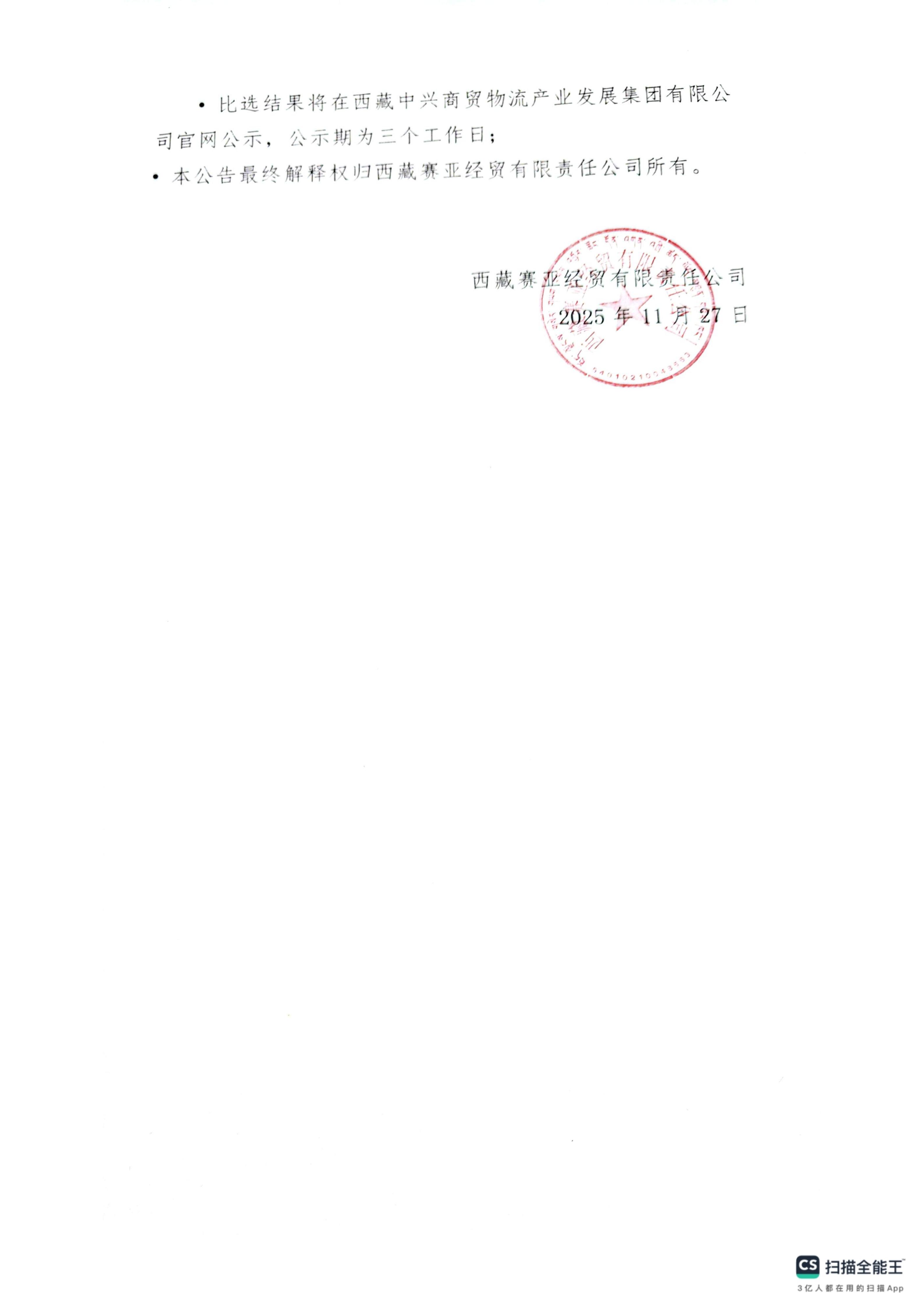 西藏中兴商贸物流产业发展集团有限公司