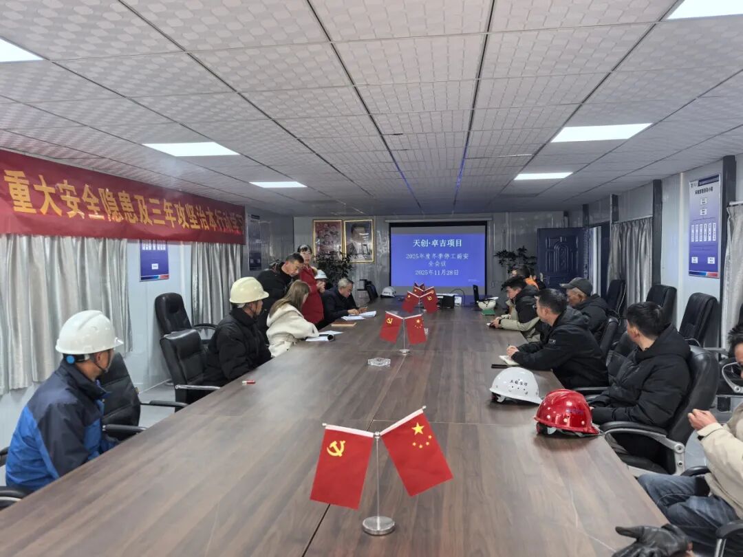 2025年11月28日,西藏雪域天创公司组织召开“天创・卓吉”项目2025年度冬季停工安全生产专题会议,并联合开展安全专项检查。项目监理单位、施工单位相关负责人全程参会,三方协同落实停工前各项安全管理工作。