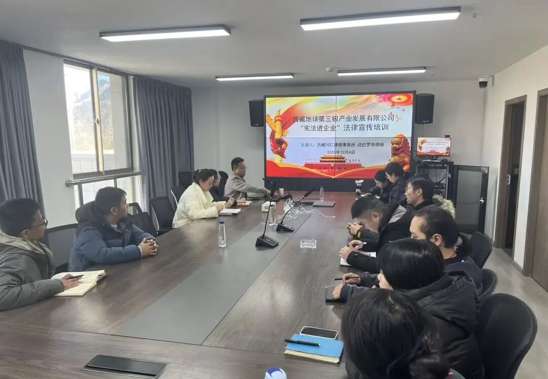 2025年12月4日是全国法制宣传日暨国家宪法日,西藏地球第三极产业发展有限公司邀请了西藏冈仁律师事务所边巴罗布律师作“宪法进企业宣传周”之《中华人民共和国宪法》及《民法典合同篇》专题培训,总公司及所属生鲜公司、皮革公司、毛纺公司共计14名干部职工参加了本次培训。