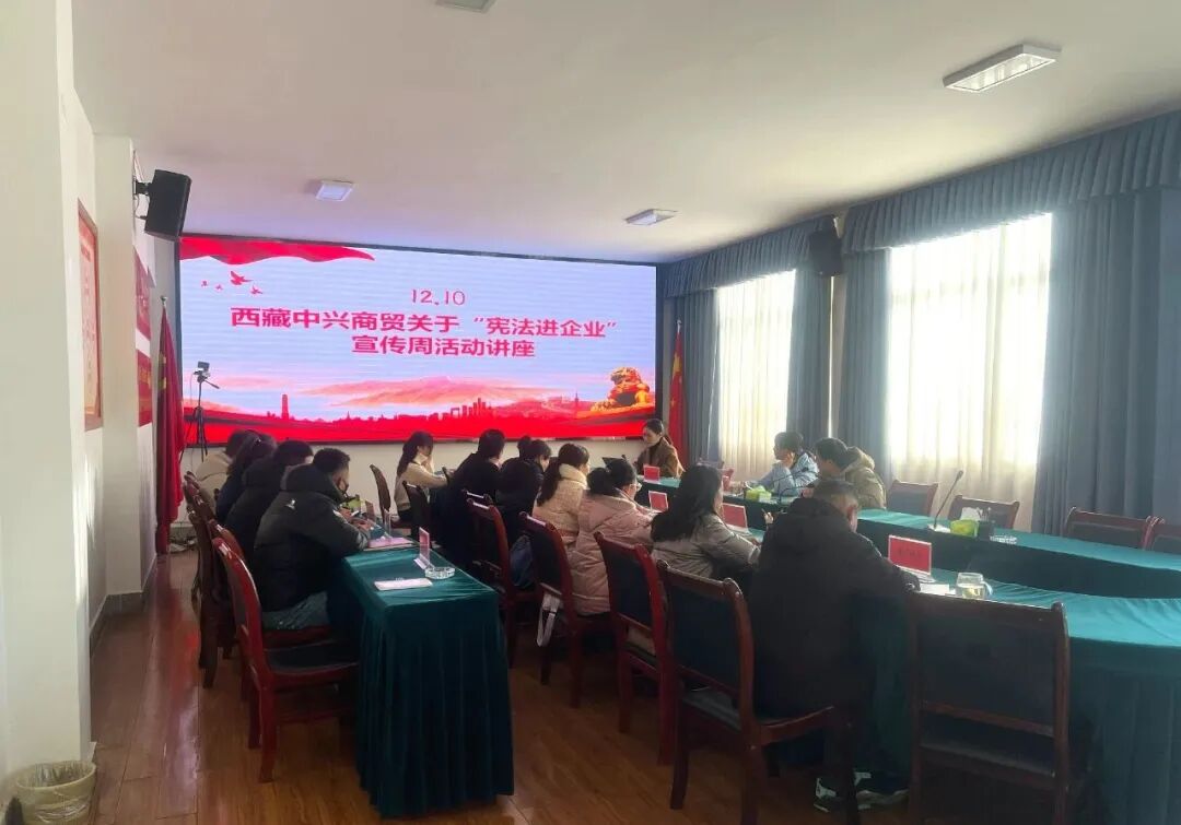 为深入学习宣传贯彻习近平法治思想,推动宪法精神在集团落地生根,集团党委高度重视,于12月11日在二楼会议室举办“中兴大讲堂”第6期 “宪法进企业”宣传周专题讲座。本次活动由集团公司法务部副经理朱洋洋主持,集团高管副总法律顾问伏玉云列席指导,特别邀请西藏珠穆朗玛律师事务所扎西拉姆律师主讲,各部门负责人及子公司的 30 余名合规专员、业务骨干共同参与学习。