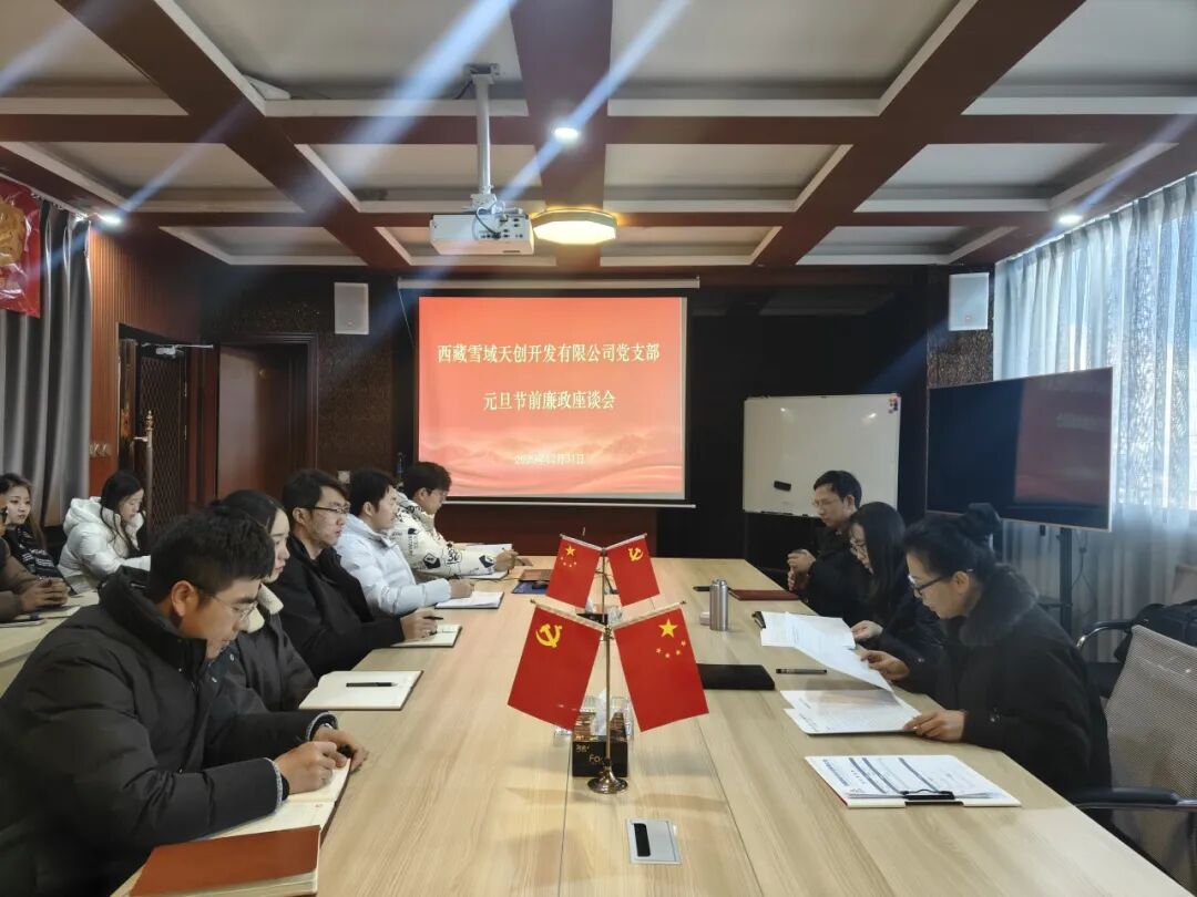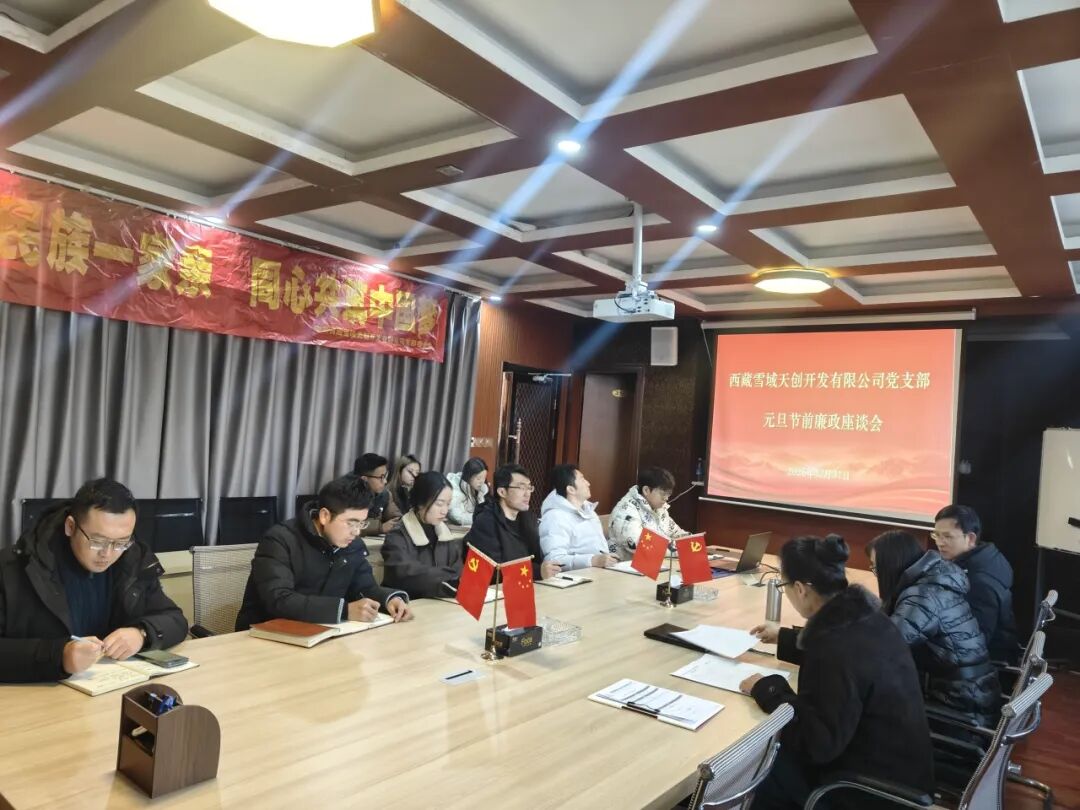 为落实全面从严治党要求,压实节日期间廉政责任,筑牢干部职工廉洁自律思想防线,2025年12月31日,在元旦佳节来临之际,雪域天创开发有限公司党支部书记、董事长白玛央珍同志主持召开节前廉政座谈会,以“廉政+业务”融合为导向,部署节前廉政工作、凝聚廉洁共识,为企业高质量发展筑牢廉洁保障,公司全体党员干部参加此次会议。