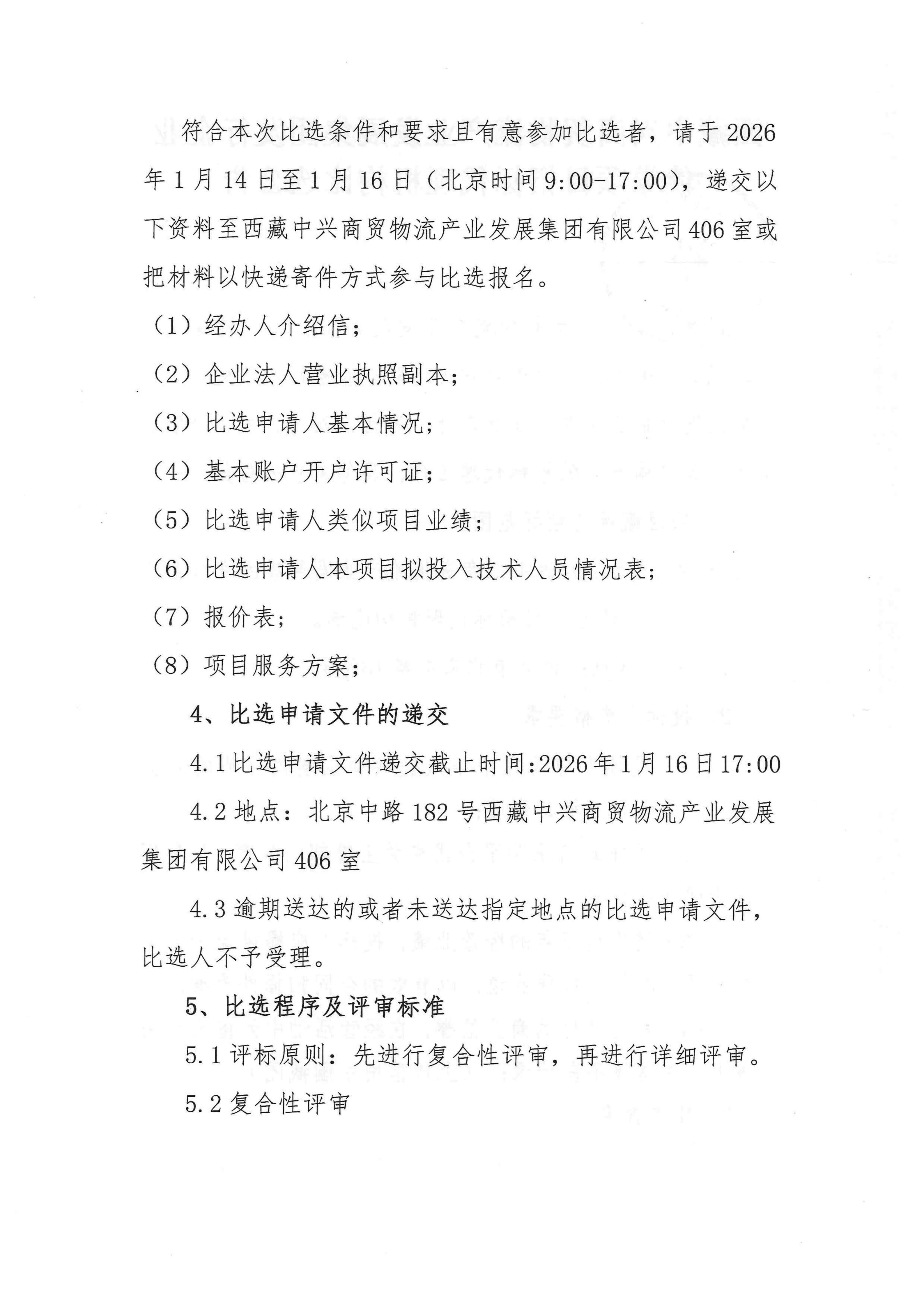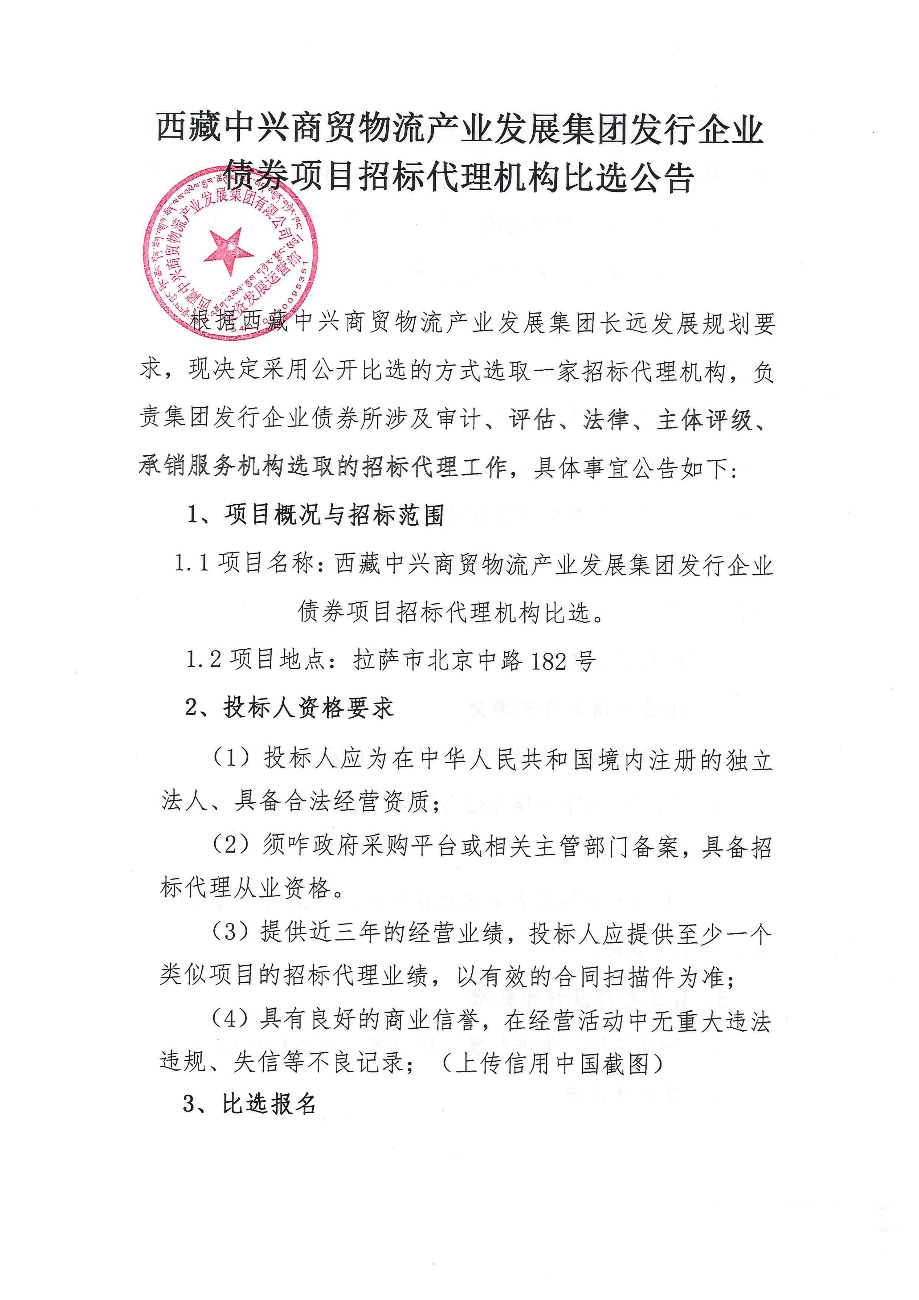 西藏中兴商贸物流产业发展集团发行企业债券项目招标代理机构比选公告