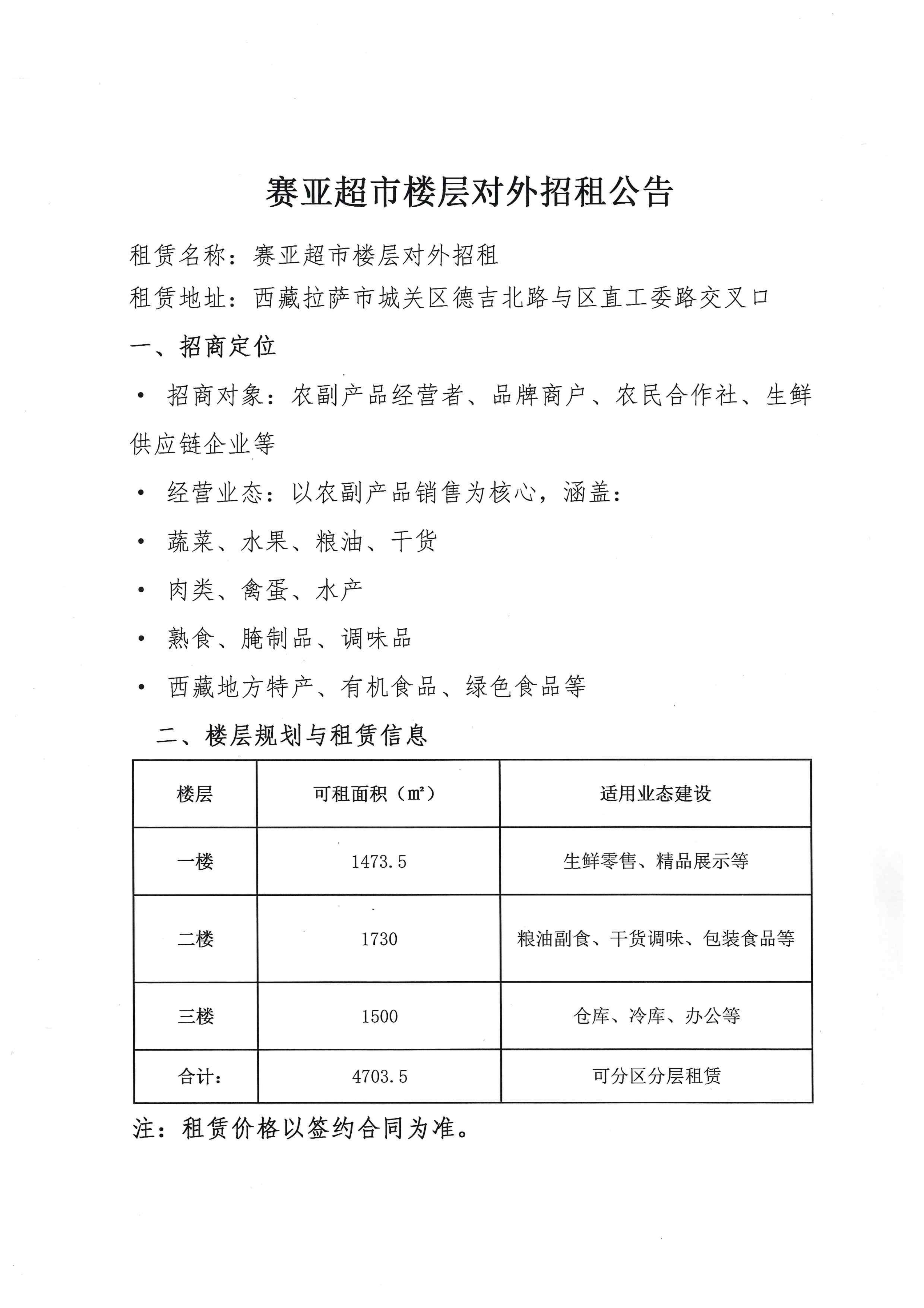 赛亚超市楼层对外招租公告