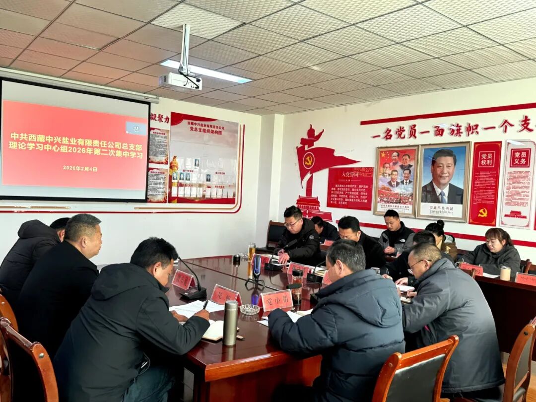 བོད་ལྗོངས་ཀྲུང་ཤིན་ཚོང་དོན་ཟོག་འགྲེམས་ཐོན་ལས་གོང་འཕེལ་ཚོགས་པ་ཚད་ཡོད་ཀུང་སི།为深入学习贯彻习近平总书记在二十届中央纪委五次全会上的重要讲话以及王君正书记在自治区纪委十届六次全会上的讲话精神,2026年2月4日,盐业公司党总支组织召开理论学习中心组2026年第二次集中学习会。会议由公司党总支书记、董事长党小朝同志主持,盐业公司在家班子成员、部门正(副)职以及全体在家党员(含预备党员)现场参会,各分公司负责人及在职党员通过线上方式参加此次学习会。