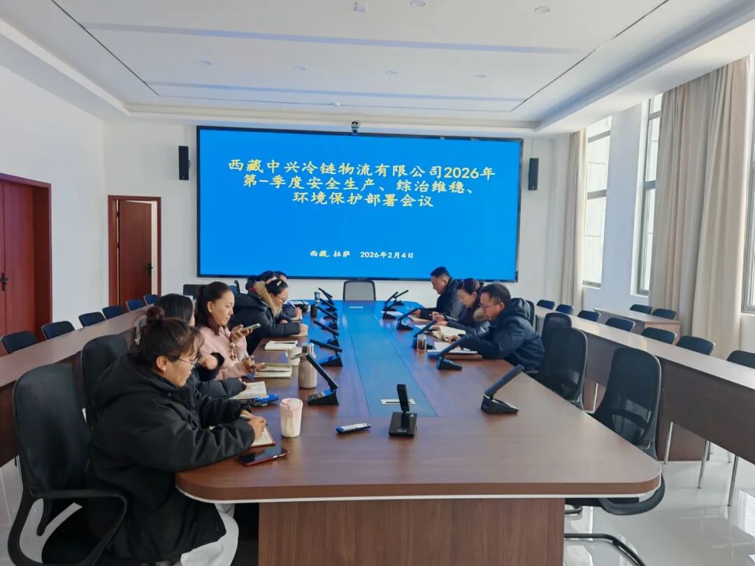 བོད་ལྗོངས་ཀྲུང་ཤིན་ཚོང་དོན་ཟོག་འགྲེམས་ཐོན་ལས་གོང་འཕེལ་ཚོགས་པ་ཚད་ཡོད་ཀུང་སི།为全面贯彻落实集团公司有关会议精神,进一步夯实安全基础,提升环境质量,营造和谐氛围。2026年2月4日下午,西藏中兴冷链物流有限公司在办公楼5楼会议室召开2026年第一季度安全生产、综治维稳、环境保护部署会。会议由公司党支部委员、副总经理李亮同志主持,全体在岗人员参加会议。