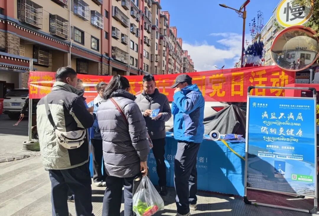 上午,盐业公司选派4名党员代表,联合公司营销团队,前往朗塞九区和嘎吉林四区,开展“健康中国行动(西藏) 健康用盐进社区”宣传活动。党员代表们变身健康宣传员,向居民普及低钠盐知识,发放宣传资料并推广产品,真正让党建融入业务、让健康走进家庭。