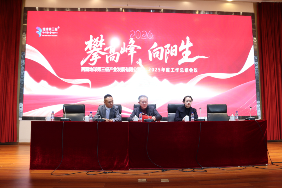 2026年2月11日下午,西藏地球第三极产业发展有限公司以“攀高峰,向阳生”为主题,隆重召开2025年度工作总结会议。公司党总支、董事长杜亚宁出席会议并作年度汇报讲话。会议全面复盘了过去一年攻坚克难的奋进历程,科学部署了新一年的突围攻坚任务。全体干部职工、来宾及合作伙伴代表齐聚一堂,共同回顾与展望。